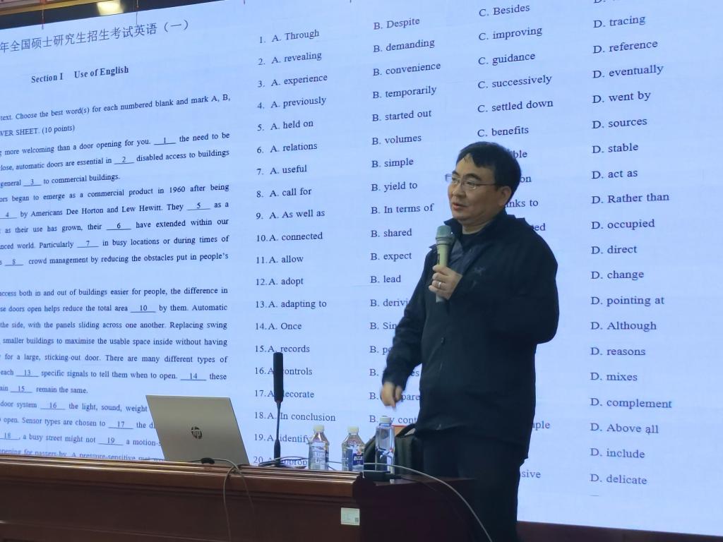 讲座中,何凯文老师对考研英语的各类题型进行了全面而深入的剖析,结合历年真题,逐一讲解了各类题型的解题策略与技巧。他特别强调了熟悉考试结构、掌握答题要领的重要性,并鼓励同学们要在备考过程中做到心中有数,方能在考场上游刃有余。此外,何凯文老师还通过一系列生动具体的案例与实操性极强的方法,深入浅出地阐述了如何迅速捕捉阅读文章的核心要点、如何构思并撰写出高分英语作文以及如何实现翻译题目的准确与流畅。他的讲解幽默风趣、深入浅出,让在场的每一位同学都受益匪浅。
