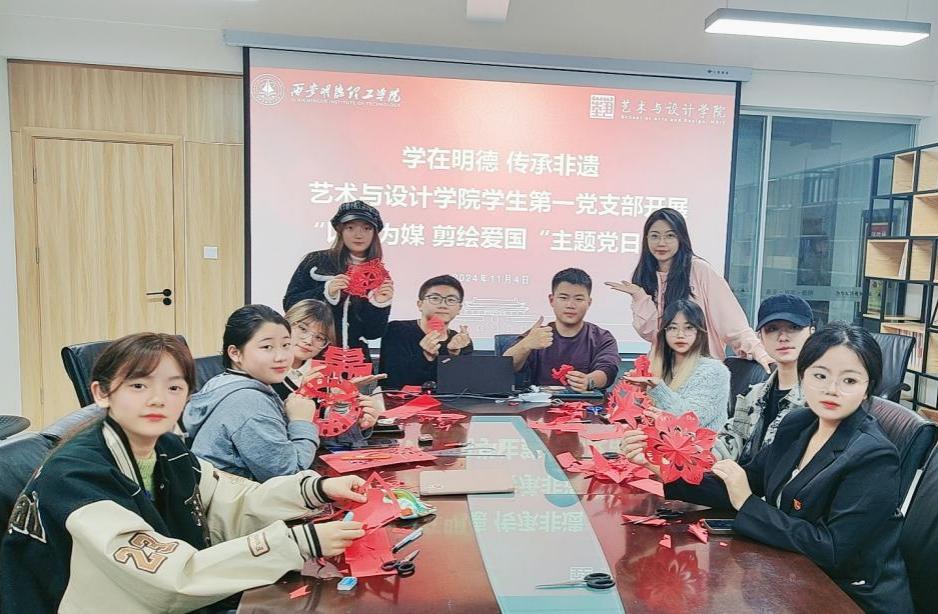 为了进一步弘扬和传承宝贵的文化遗产,增强爱国主义精神和使命感,增进党员对非遗文化的认识与理解,11月6日,艺术与设计学院学生第一党支部在0号楼北507会议室开展“以纸为媒·剪绘爱国”主题党日活动,将爱党爱国情怀与剪纸艺术相结合,丰富党员的精神文化生活。本次活动由支部书记张睿华主持。