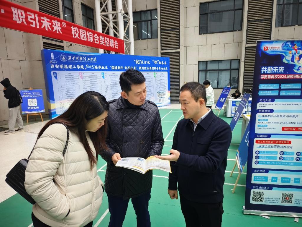 此次招聘会邀约中航富士达科技股份有限公司、西安纳维通信技术有限公司、山东嘉富自动化科技有限公司、内蒙古伊利实业集团股份有限公司、北京学而思教育科技有限公司、长安花粮油股份有限公司、北京指南针科技发展股份有限公司等101家省内外知名企业参加,提供岗位3187个,基本涵盖开元2025届毕业生所学专业。招聘会上,西安市长安区人才交流服务中心、西安高新区工委组织人事部及西安航天基地科技创新与人才服务中心工作人员就毕业生关心的求职补贴、就业创业等人社政策现场给予解答。学校人武部也安排专人现场解答学生应征入伍相关问题,进一步树立“入伍即就业”育人理念。