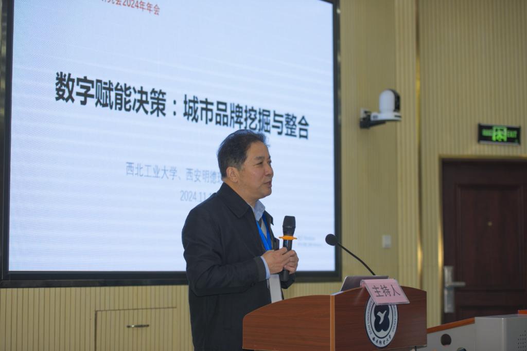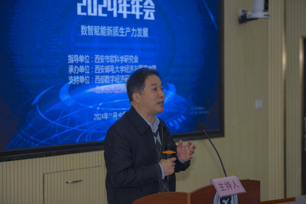 会上,西安市软科学研究会会长、Ky开元集团经济与管理学院院长郭鹏教授致辞并做主旨报告。郭鹏院长在致辞中代表西安市软科学研究会对本次大会的胜利召开表示热烈祝贺,向与会专家和学者们致以诚挚问候。他简要介绍了西安市软科学研究会概况,结合“数智赋能新质生产力发展”会议主题对如何利用数智技术赋能新质生产力和城市品牌挖掘与整合,促进经济社会的高质量发展,开创数字经济与新质生产力融合发展的新局面提出了新的理论和实践要求。