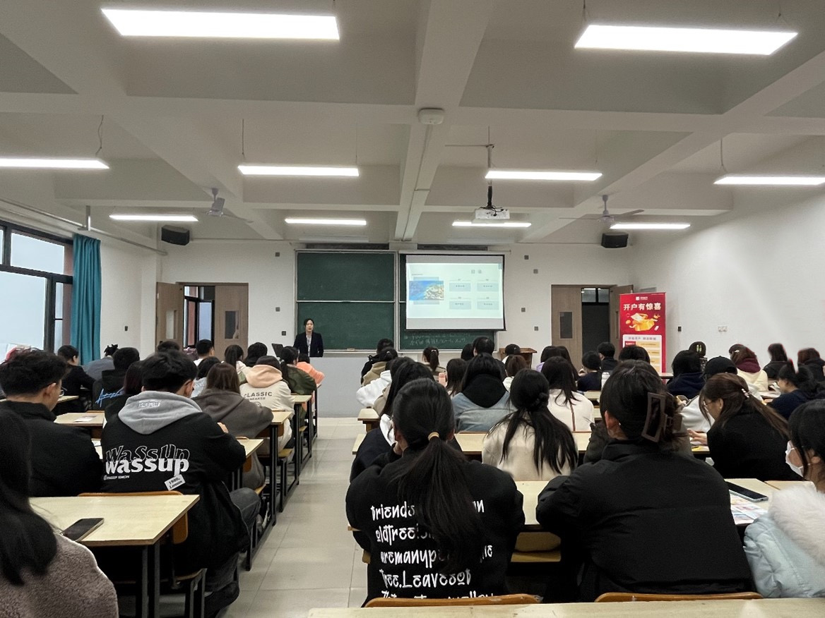 赵佳从金融科技、数字化转型、加密货币、金融监管等多个方面,向学生介绍了证券行业的现状及未来发展趋势,阐述了银行、证券和保险行业的组织架构与具体岗位需求。宣讲会结束后,企业方针对现场同学关心的求职问题进行了耐心解答,现场氛围融洽而热烈。