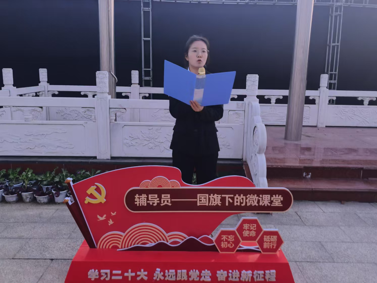 12月2日,“辅导员说成长”——辅导员讲微课“聚焦合格评估,体悟明德精神”国旗下的微课堂爱国主义教育系列活动在学校中心广场进行,党委学生工作部老师、经济与管理学院师生代表参加活动。