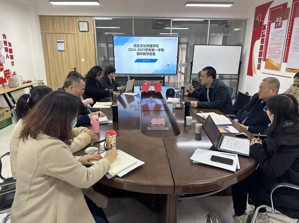 12月12日上午,语言文化传播学院在明志楼北406召开2024-2025学年第一学期期中教学检查工作会议。教务处副处长任华、教务处相关工作人员,质量管理与评估办公室李海峰,语言文化传播学院副院长柴芸、刘勇,办公室主任范亚苗、专业负责人、教务员等参加会议。会议由任华主持。