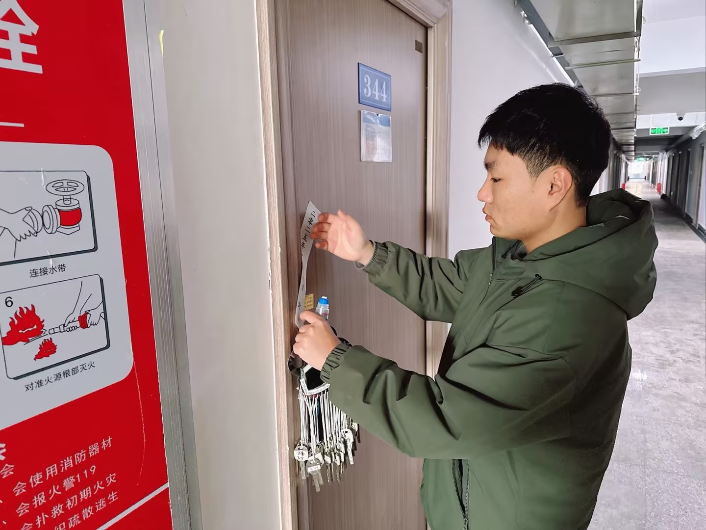 在确保所有寝室无安全隐患的情况下,为了在寒假期间保护学生的个人物品和寝室安全。老师们为已离校的学生寝室贴上了封条,也意味着寝室进入了“休眠”状态,等待同学们下学期归来。老师们的贴心问候,让同学们倍受温暖,他们纷纷表示会严格遵守寒假期间的学生教育管理要求,积极配合学院做好离校安全返乡工作。