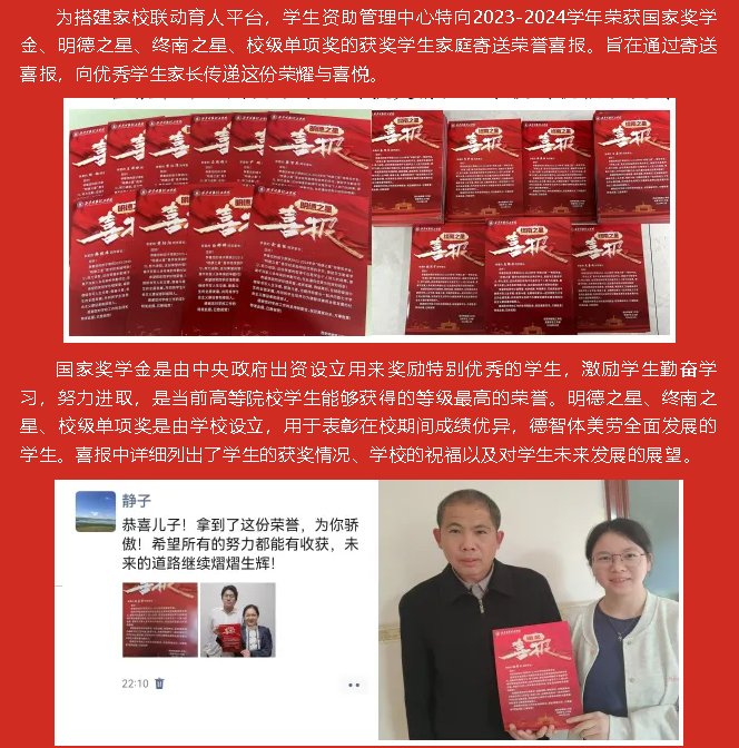 幸福感满满!学校向国家奖学金、校奖学金获奖学生家庭寄送喜报!