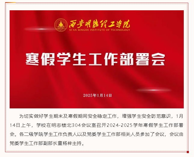 学校召开2024-2025学年寒假学生工作部署会