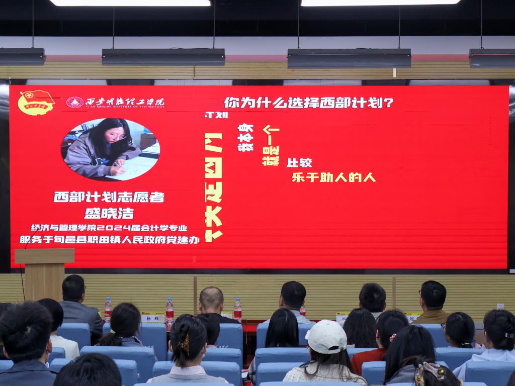 政策解读入心,就业保障护航。校团委副书记刘雄围绕西部计划的招募条件、服务领域、政策优待等内容展开详细解读,并重点介绍了学校对志愿者的专项支持措施,包括岗前培训、生活补贴、考研加分及就业帮扶等。招生就业中心主任王育春从职业发展角度分析西部计划对毕业生就业竞争力的提升。现场还设置了互动答疑环节,毕业生们就岗位分配、服务期规划等问题踊跃提问,现场气氛热烈。