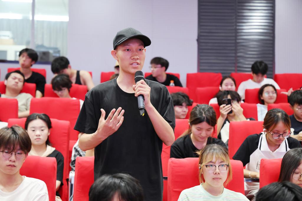 在互动环节,同学们踊跃提问,围绕如何选择质量高且适合自己的经典、如何有效突破“信息茧房”、怎样培养阅读习惯等问题展开深入探讨。卢教授以渊博的学识和丰富的从教经验为同学们答疑解惑,并向图书馆和踊跃提问的同学们赠送了签名版个人专著。