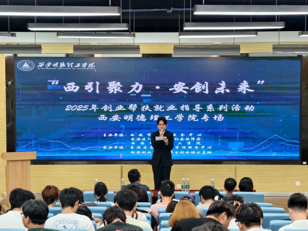 陕西水木数字经济创新研究院院长沙清华以数字经济时代创新创业新方向为主题围绕数字经济的基本定义、由来及构成等模块展开分析,对数字经济发展趋势的创新与变革,针对行业成长性、商业模式、财务状况等创业过程中的难点问题,结合国家职业分类体系框架,做出进一步解答。在问答环节中,学生们积极提问,导师为大家耐心解答,现场互动热烈,从宏观形势到具体实操,为同学们拨开了创业迷雾。