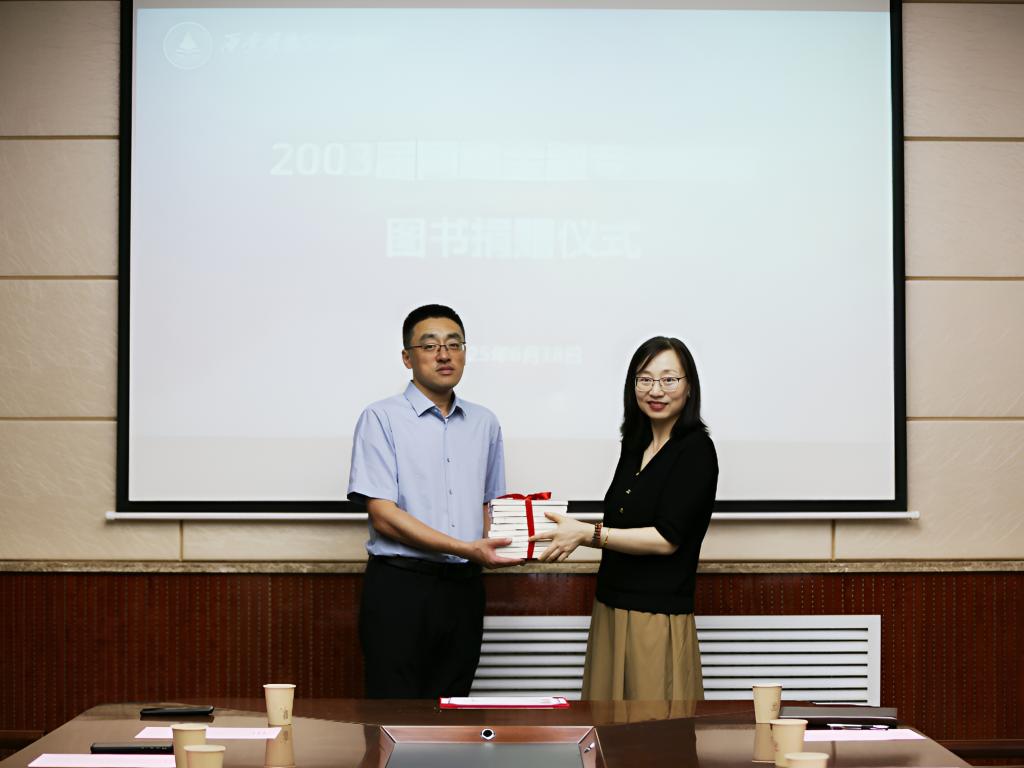 在温馨而愉悦的氛围中,校友代表们将承载着浓浓情意的图书交接给校方,强丽丽副馆长代表学校图书馆向校友颁发了捐赠证书,并承诺将这批图书陈列于即将落成的明德文化教育馆专题资源库——明德文库。侯磊副主任代表学校表达了对校友赠书之举的感谢,并诚挚邀请各位校友常回家看看,表达了母校也情系广大校友,随时欢迎大家的归来。