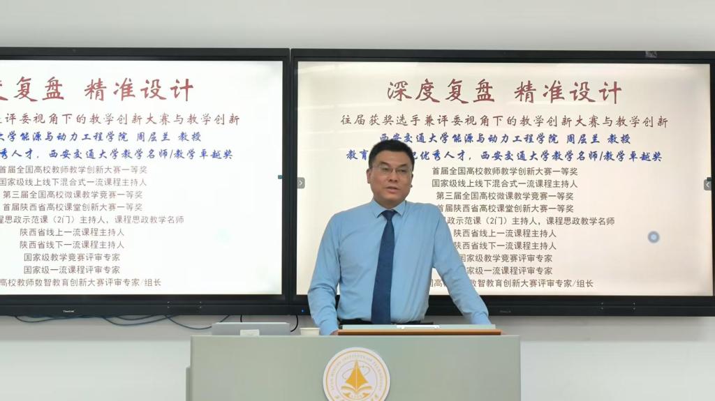 为助力广大教师深入探索教学创新路径,备战即将到来的校内教学创新大赛决赛,深化教育教学改革,提升人才培养质量,学校于6月17日举办教师教学创新大赛专项培训讲座(第一场)。本场培训特邀西安交通大学能源与动力工程学院教授、首届全国高校教师教学创新大赛一等奖、国家级教学竞赛评审专家周屈兰担任主讲嘉宾。本次讲座以“深度复盘 精准设计”为主题,吸引了全校50余名教师参与,现场氛围浓厚,反响热烈。