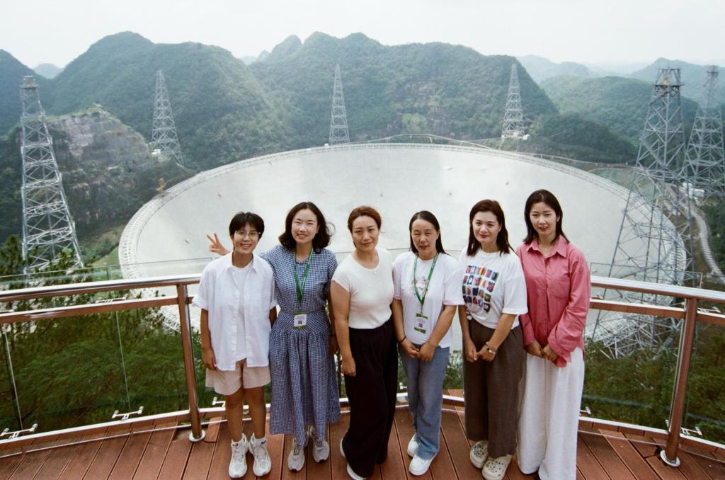 最后一站,研修团队来到“中国天眼之城”——平塘县。在黔南连绵的群山之间,学员们们自山下拾级而上,走过700余级阶梯,在群山顶峰处感受大国重器——“中国天眼FAST”带来的巨大震撼,这座目前世界上最大、最灵敏的单口径球面射电望远镜,静静凝望着浩瀚宇宙。在山下,老师们参观了南仁东纪念馆、天文博物馆,从壮年到暮年,南仁东用一生探索宇宙奥秘,克服无数技术难关,带领团队铸就了独一无二世界领先的超级工程——“中国天眼FAST”,深切感受到“中国天眼之父”南仁东科研报国、服务人民的爱国情怀。