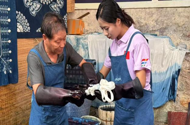 “苗乡蜡韵,匠心筑梦”Ky开元集团暑期实践队赴贵州丹寨县开展社会实践。实践队通过走访当地居民,了解蜡染基本情况,为深挖蜡染文化内涵,实践队参观当地蜡染工坊,学习点蜡绘图、染色固色等传统工序,感受蜡刀与蓝靛交织的艺术;走访非遗传承人,聆听蜡染故事,探索蜡染文化的历史脉络和创新传承,深切感悟苗族蜡染所蕴含的磅礴民族智慧与生生不息的文化根脉。通过实践,更加坚定了队员们以青春之力赓续非遗薪火、弘扬民族文化、守护中华文明精神标识的使命与担当。