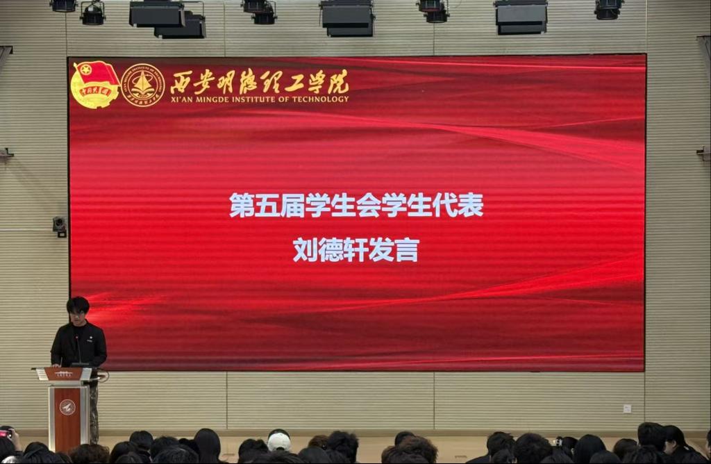 第五届团委学生代表高天乐、学生会学生代表刘德轩同学依次发言。他们向辛勤付出的老师和上一届学生干部致以崇高敬意,发言中,两位代表言辞恳切、满怀热忱,既表达了对学生工作的热爱,也展现了在未来将以更饱满的热情服务师生、助力学院发展的信心与决心。