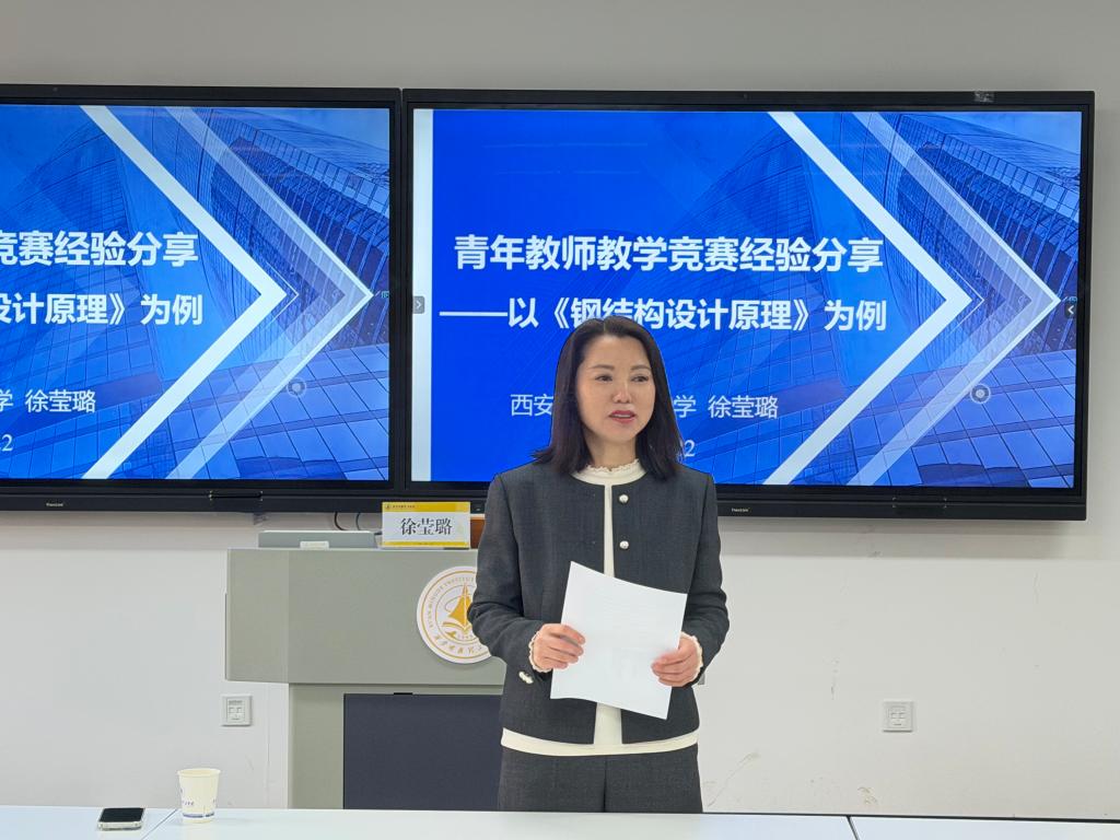 徐莹璐副教授结合自身深耕省赛、国赛的丰富实战经验,紧扣“成长轨迹、参赛筹备、课堂展示、经验总结”四大核心板块,为参训教师构建了一套完整且可落地的备赛体系。在“成长轨迹”分享中,她以自身参赛进阶历程为蓝本,拆解了从普通课堂教学到竞赛优质课堂的蜕变逻辑,强调竞赛成长是教学能力迭代升级的重要路径;“参赛筹备”环节,她围绕教学大纲精准编制、教学设计靶向撰写两大核心,结合青教赛评分标准,逐一拆解备赛关键节点,明确了大纲贴合竞赛导向、设计凸显工科特色的核心要求;“课堂展示”部分,她以《钢结构设计原理》参赛课程为实例,灵活运用视频动画、虚拟仿真等信息化手段,将抽象难懂的力学原理转化为直观可感的教学情境,深入阐释了“案例贯穿、问题驱动、BOPPPS闭环”教学模式在工科课堂的实操方法,同时从PPT版式设计、动画节奏把控、教态自然呈现等细节给出具体指导;“经验总结”环节,她聚焦教学反思深度打磨、突发问题应急处理等关键要点,分享了自身备赛避坑技巧,为参训教师提供了兼具针对性与实用性的备赛指南。