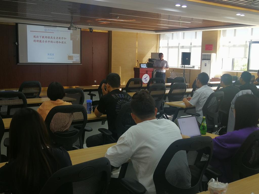 朱院长以现状下教师提高自身教学和科研能力水平的心得和建议为题,结合自身工作实践,全面介绍了教学与科研两个方面的心得与经验,并针对新教师走向教学岗位提出了诸多可操作性建议。在讲课中朱院长围绕主题深入浅出,举例说明生动有说服力,听课青年教师普遍认为讲座有启发,有收获。