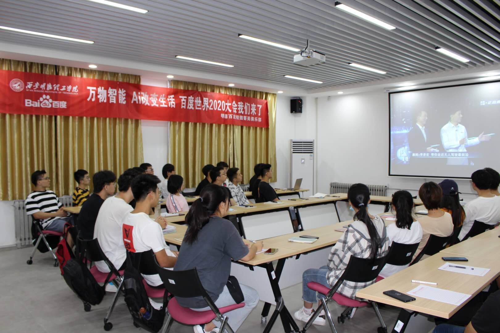 2020年9月15日,“万物智能—百度世界2020”大会在线上召开。明德百度校园菁英俱乐部组织全体会员在明心楼501会议室集中观看了百度世界2020大会直播盛况。