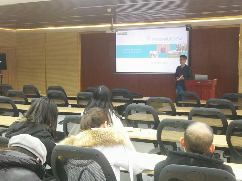 郑老师以好老师是民族的希望为题,围绕新时代教师的职业道德与责任,联系国家教育政策方针,结合自身教学科研实践心得,从三个方面进行讲授。首先,提出教师是立教之本、兴教之源,从兴国必先强师、教师是教育发展的第一资源、教师是打造中华民族“梦之队”的筑梦人的不同层次进行分析。其次郑老师强调要做党和人民满意的好老师。对于好老师的标准,从理想信念、道德情操、扎实的学识以及仁爱之心的角度展开讲述。期间,郑老师与新教师们分享了黄大年感人事迹的视频资料,并进行了热情洋溢的讲评。对于如何加强教师职业责任与道德建设,郑老师强调要把师德师风作为评价教师队伍素质的第一标准。在实践中,要坚持潜心问道和关注社会相统一,坚持教育引导和自我修养相结合,坚持言传和身教相统一。