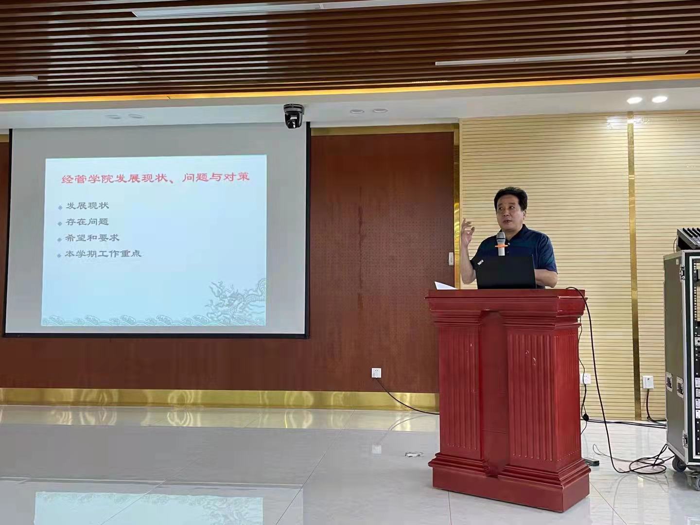 会议最后,郭院长对学院的6支队伍提出希望和要求。希望全院教工以一流学院为目标,牢记使命、真抓实干,坚持内涵发展,推进全面提升,奋力书写经济与管理学院改革发展的新篇章。