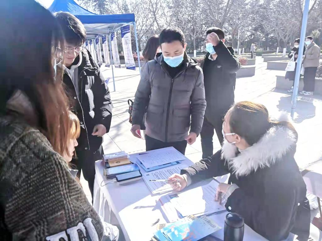 经济与管理学院党委书记何文举、就业办老师、相关专业辅导员一行9人也随同毕业生到场对接招聘企业、为毕业生求职加油鼓劲。