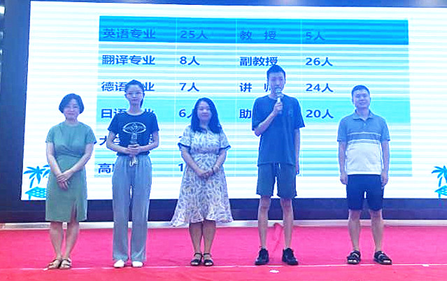 接着,院长马庆林教授作了题为《语言文化传播学院2021年度工作总结及2022年度重点工作计划》的工作报告。全面回顾了2021年我院专业、课程建设及课堂教学创新,人才引进,学科竞赛,实验室建设等重点工作的完成情况及所取得的成绩,深入分析了存在的问题,并从新专业建设、课程建设、学科竞赛、校企合作、国际交流与合作等方面对2022年的重点工作进行了安排部署,明确了目标任务。最后,马庆林对全体教师提出三点希望:一是认真设计准备并讲好每一节课,不忘教书育人的初心和使命,努力做好“四有”好老师;二是正确处理好教研相长的关系,做到教学和科研两手都要硬;三是正确处理好学校、学院、个人之间的关系,不断提升自我,勇于改革创新,敢于担当作为。