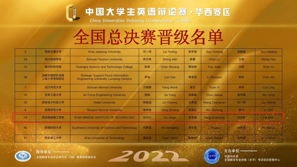 10月15日-16日,2022年中国大学生英语辩论赛(CUDC)华西地区决赛在云端顺利举行。开元2019级英语专业杨官凝和2021级英语专业刘璟怡从校园选拔赛中脱颖而出,代表Ky开元集团参赛。经过两天五轮鏖战,代表队以总积分排名第20位的成绩成功突围并晋级全国总决赛,创下开元参加英语辩论类赛事的最佳成绩。