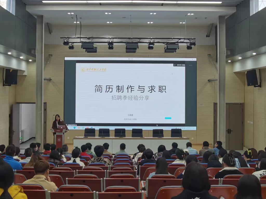 为扎实推进学院就业工作,提高学生求职就业能力,做好大学生职业生涯引导工作,3月3日,艺术与设计学院邀请产品设计专业教师王嘉睿为2023届学生进行简历制作培训会,毕业班辅导员、2023届全体毕业生参会。会议由辅导员党红娟主持。