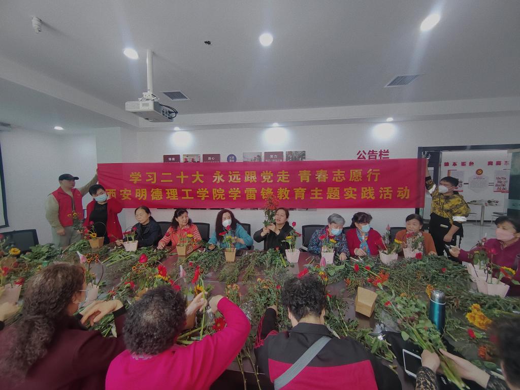 3月6日下午,学校艺术与设计学院教工党支部书记教师常静带领学生志愿者,走进莲湖区桃园路街道第一中心社区“大学生社会实践基地”,开展“学雷锋、迎三八”主题教育社会实践活动,活动受到西安官方媒体“西安发布”的报道。