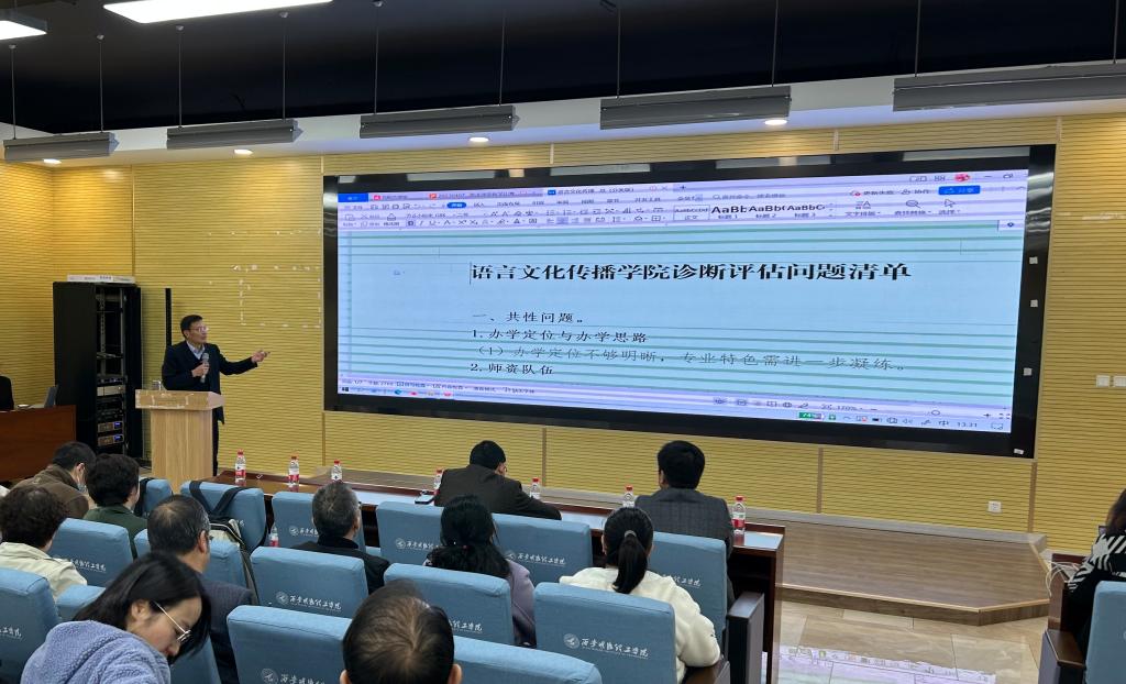 4月7日下午,语言文化传播学院在建德楼202召开本科教学工作诊断评估整改动员大会。全体教职工参会,学院副院长刘勇主持。