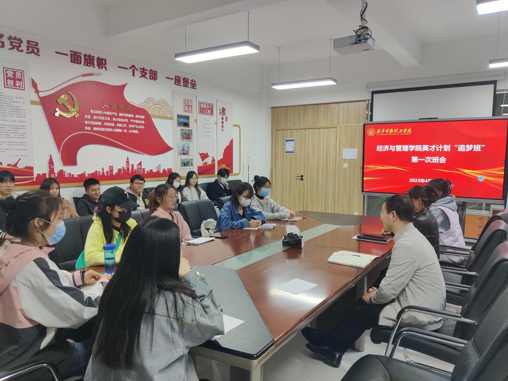 4月6日,经济与管理学院英才计划“追梦班”第一次班会在明志楼北606召开,经济与管理学院党委书记兼行政副院长何文举、2021级辅导员代表耿露、白丽萍、张爽及学院“追梦班”全体学生参加了活动。“追梦班”班主任何文举主持了班会。