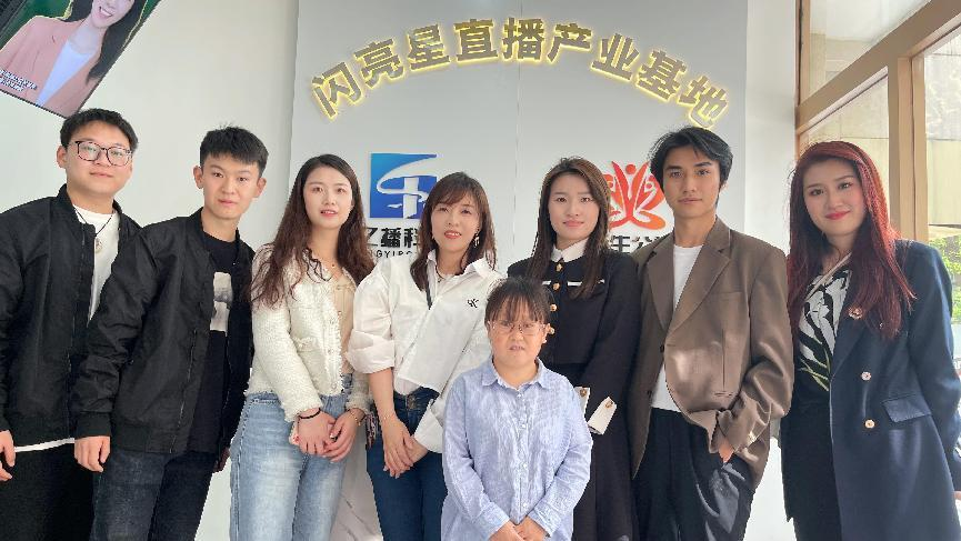 4月10日下午,Ky开元集团艺术与设计学院播音与主持艺术专业姚璐、张文挺、符郁和4名学生一行前往陕西闪亮亿播科技有限公司-闪亮星直播产业基地(以下简称:基地)进行校企合作交流。