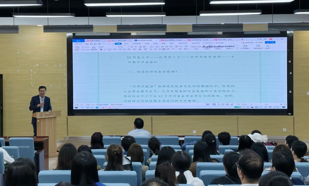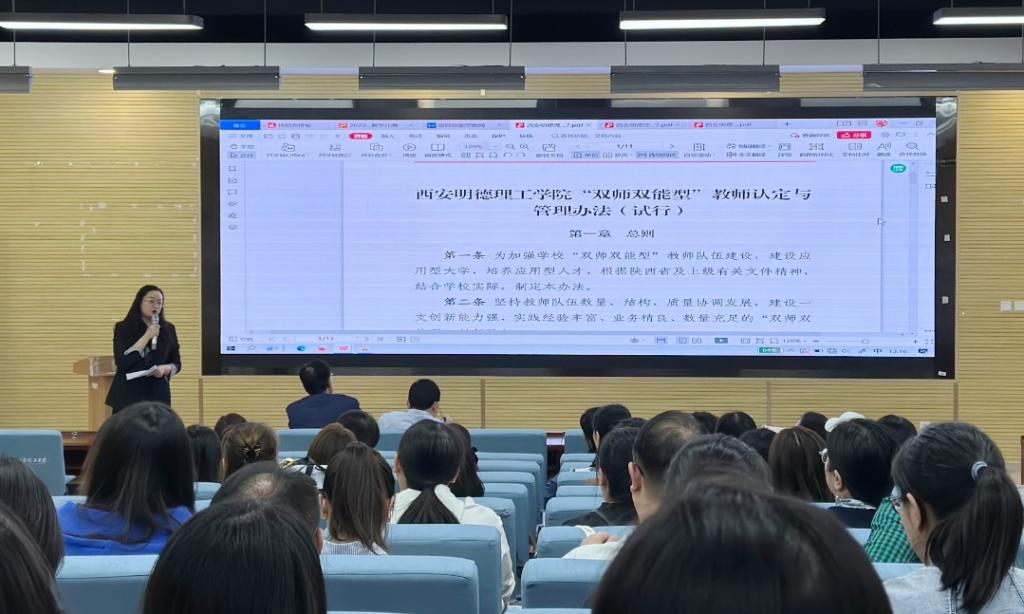 院长马庆林首先对《Ky开元集团“双师双能型”教师认定与管理办法(试行)》进行解读。他指出应用型大学肩负着应用型人才培养的任务,需要首先造就一大批德才兼备的“双师双能型”教师。而教师队伍建设也是本科教学工作合格评估中一项核心指标。马庆林从“双师双能型”教师的定义、认定标准、“双师双能型”教师队伍建设举措、学校保障措施和政策支持等方面进行研判,要求全体专职教师积极考取“双师双能型”资格证书或到企事业单位挂职锻炼。