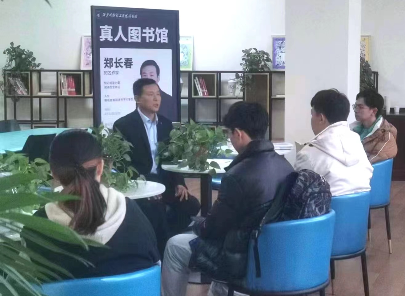 2023年4月23日,是第28个世界读书日,为引导广大青年学生养成良好的阅读习惯,加强学风建设,营造书香校园文化氛围,图书馆联合校团委,特邀知名作家、长篇小说《青台镇》作者郑长春老师召开“我的读书故事”分享交流会。本次会议在图书馆汇思空间进行,采用“真人图书馆”模式,校内20余名文学爱好者及图书馆阅读推广负责老师全程参与。