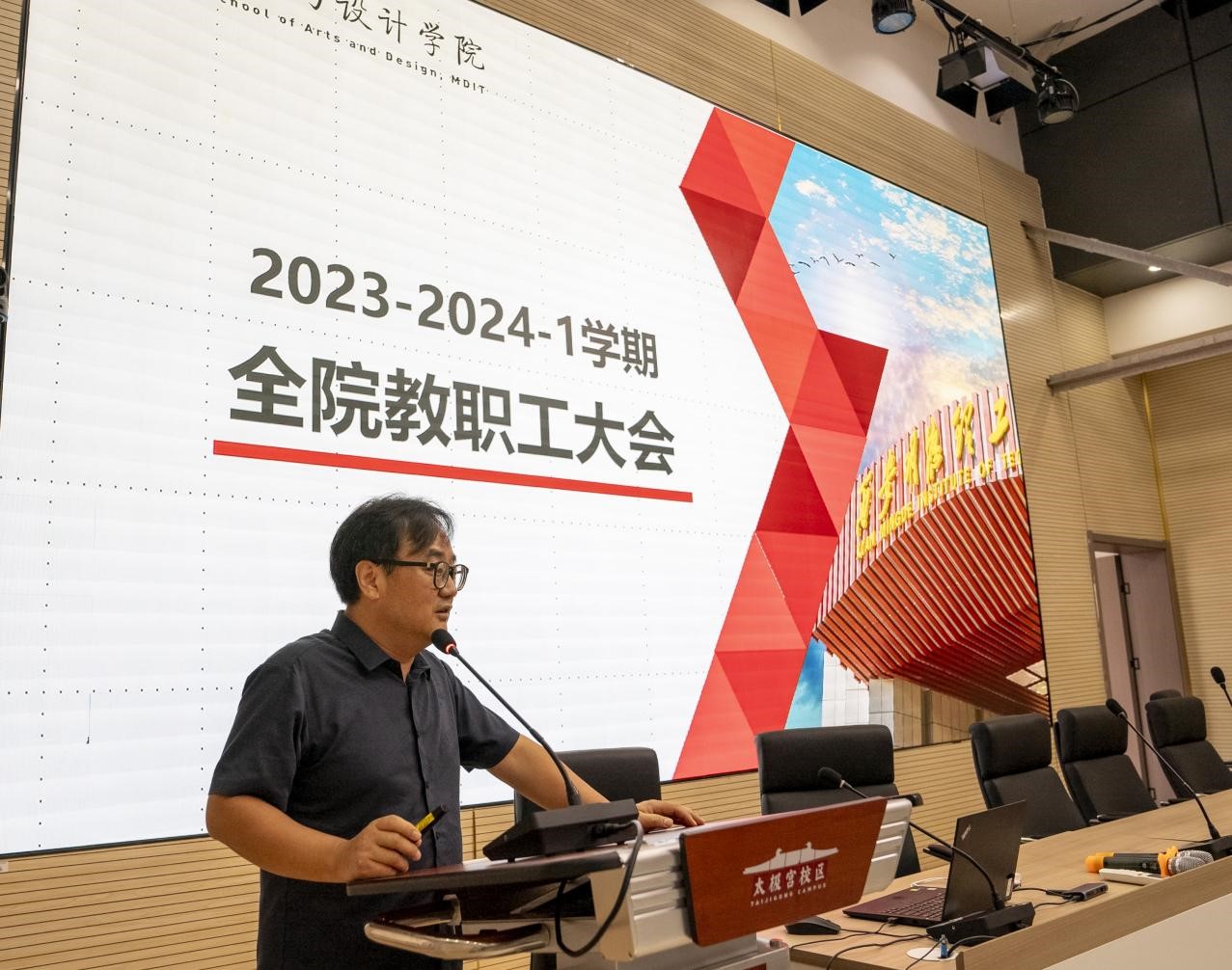 2023年9月1日下午,艺术与设计学院在北校区尚德报告厅召开2023-2024学年秋季学期全院教职工大会,部署新学期各项工作。艺术与设计学院全体教职工参加会议,会议由副院长冯强主持。