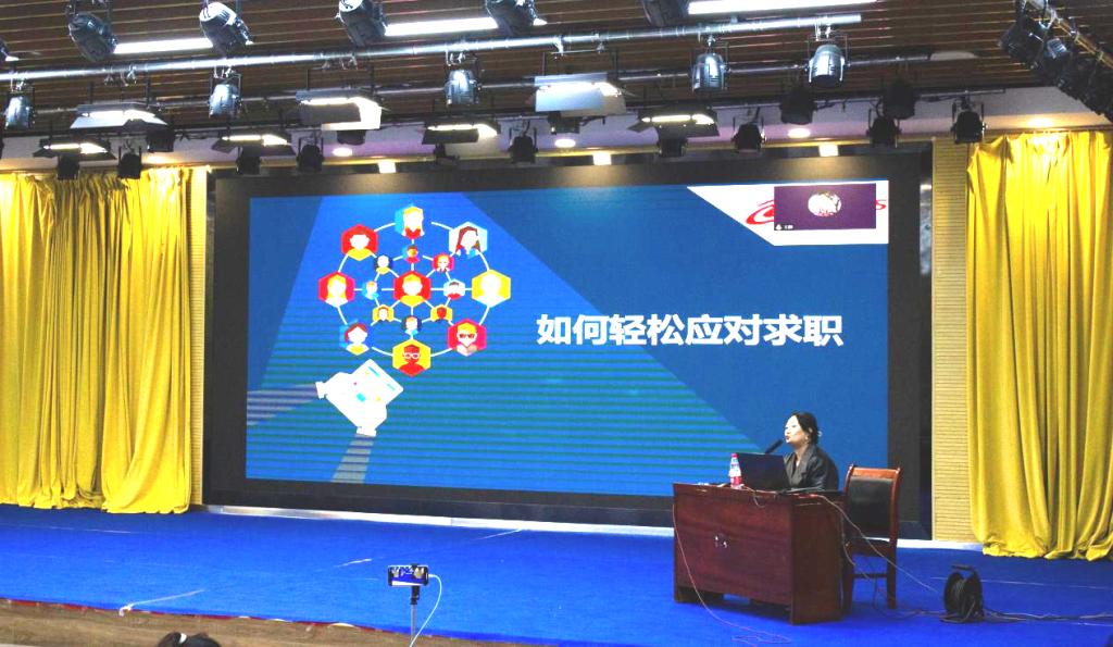 在讲座互动环节中,马总监耐心解答了学生的求职困惑,并鼓励学生积极应对就业,提前做好进入职场的准备。