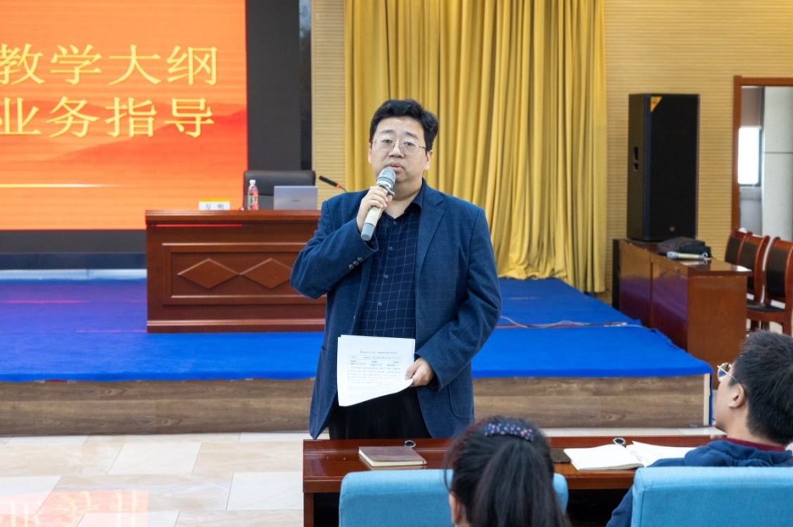 紧接着,教务处副处长文亮对前一阶段大纲修订工作进展情况进行了介绍,重点阐述了本次业务指导前收集部分课程大纲初稿及制定过程中的问题情况,并再次强调了课程大纲的时间节点和安排。