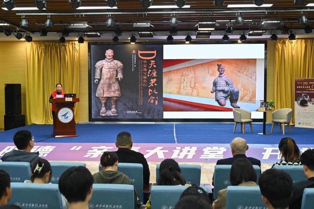 文物资源是历史文化的承载者,国家形象的“金名片”,推动发展的“助推器”。让文物活起来,日益成为党和国家持续关注的文化重策,日益成为青年学生常挂嘴边的热门话题。为了进一步学习贯彻落实党的二十大精神,厚植学生爱国情怀,增强学生文化自信。10月15日,校团委、马克思主义学院联合举办第37期明德“亲青大讲堂”,陕西省巾帼志愿服务宣讲团团长、学校志愿服务特聘专家、秦始皇陵博物院研究馆员、副院长田静老师走进明德,与开元师生共话秦文化。