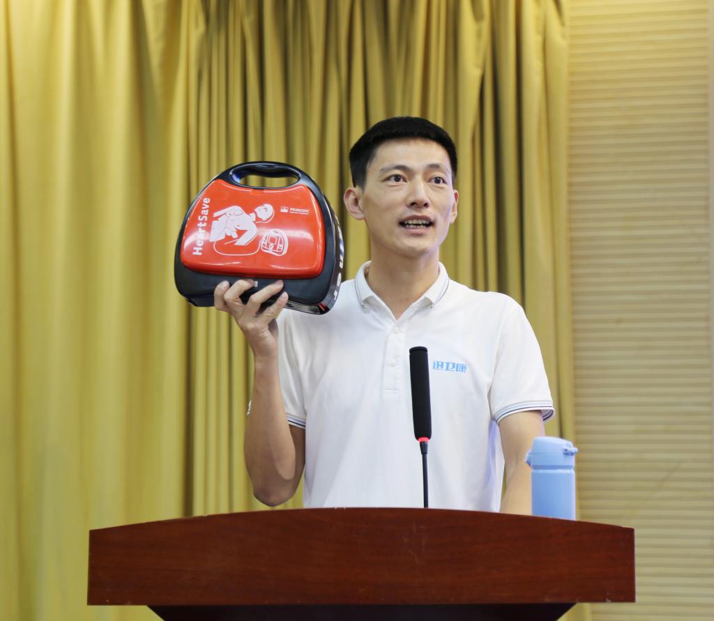 李昂扬培训师手把手教培训人员AED设备的使用方法,让参加培训人员尽快掌握了AED设备的使用知识、技能,进一步提升了学校师生安全防范意识,降低意外伤害的发生,增强自救互救能力,确保在紧急关头能够“敢用”“会用”,为师生的生命安全多扎一道“防护网”。