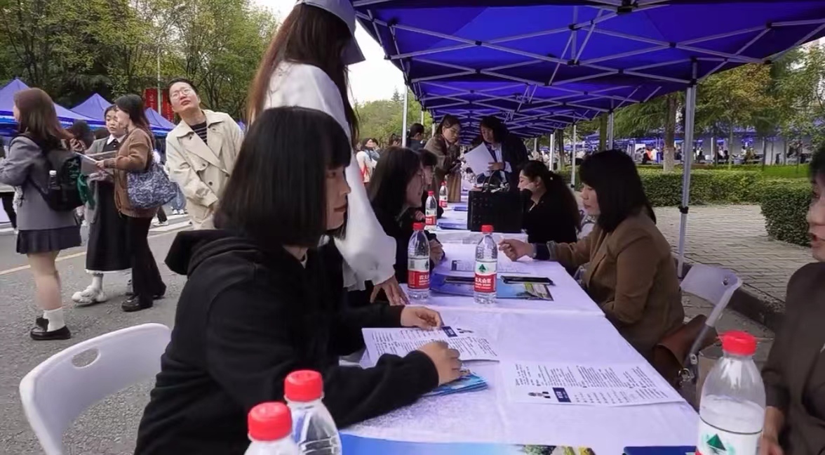 经济与管理学院毕业班辅导员深入招聘会现场,指导学生投递简历及现场初步面试技巧,鼓励学生勇于挑战高质量企业。三位辅导员及就业办公室王鹏一同和企业招聘负责人精准交流毕业生需求信息,向用人单位介绍学院的人才培养情况,收集企业岗位需求并邀请企业来校参加招聘会及专场宣讲会。现场毕业生积极向企业投递简历,咨询求职信息,接受企业招聘负责人在现场进行的初步面试。