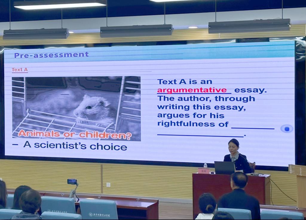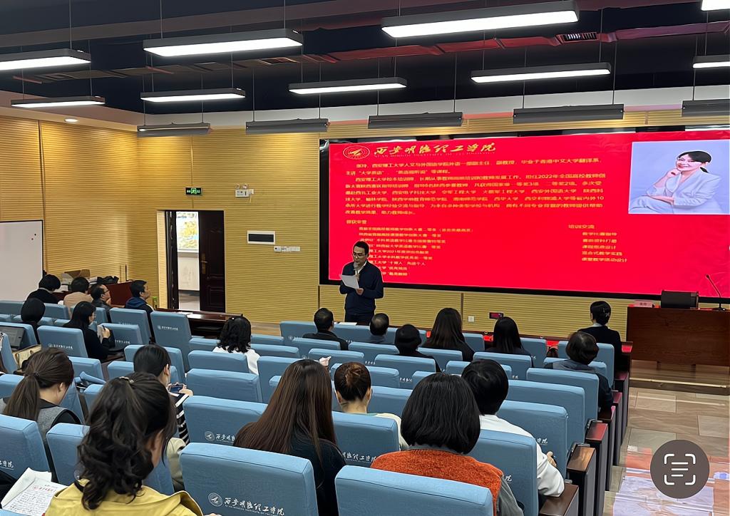 首先,张玲老师根据自己的授课经验,结合大学英语教学实践,现场进行了一小节示范,在示范课中就教学理念、课程设计、思政元素融入进行了讲解。示范课结束后,张老师做了题为“基于OBE理念的大学英语教学设计”的讲座。首先张老师提到OBE理念的概念即以结果为导向的教育,强调学生的学习成果和实际应用能力,这一教育理念的核心是关注学生的学习成果,而不仅仅是传授知识。其次,谈到基于OBE理念的大学英语教学设计,首要的任务是明确授课对象和学生学习英语的动机,学生的需求和目标是我们设计课程的出发点。在此基础上,要致力于根据教材创新设计教学内容,将思政元素融入到课程中,以提高学生的综合素质。最后,张老师结合自己的工作实践和认识,谈了教师的成长与发展,她认为高校教师的成长与发展需要在三个方面得以体现,即教学设计能力、教学实践能力和教学研究能力。教师应积极主动地寻求自主学习的机会,不断提升自己的教学水平。关键是要将教学创新贯穿于教学实践中,不断调整和改进教学方法,以适应不断变化的教育环境。