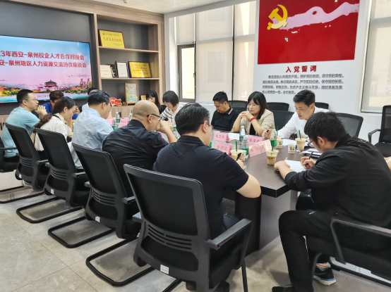 11月8日上午,在西安-泉州地区人力资源交流协作座谈会上,西安市职业介绍服务中心吴强主任表示西安与晋江的渊源很深,合作效果良好,此次携西安高校来到晋江,希望帮助更多高校与企业建立长期的合作机制,在传统人才协作基础上实现创新,助力企业需求与高校人才精准匹配,形成西安与晋江共赢发展的合作关系。西安市未央区人社局张泽宏副局长、西安市长安区人社局张卫萍副局长、西安市灞桥区人社局周美妮副局长分别就所在辖区高校整体情况和专业特色进行了介绍,表示希望与晋江企业加强沟通交流,并诚挚邀请企业前往西安市各辖区吸收人才,形成校企间深度合作。