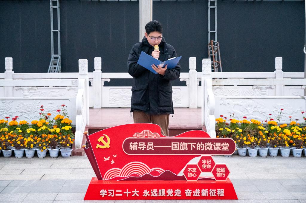11月13日清晨,“辅导员说成长”——第二十一期辅导员讲微课“划时代之桨,扬奋进之帆”国旗下的微课堂爱国主义教育系列活动在学校中心广场举行,党委学生工作部老师、高等职业技术学院师生代表参加活动。