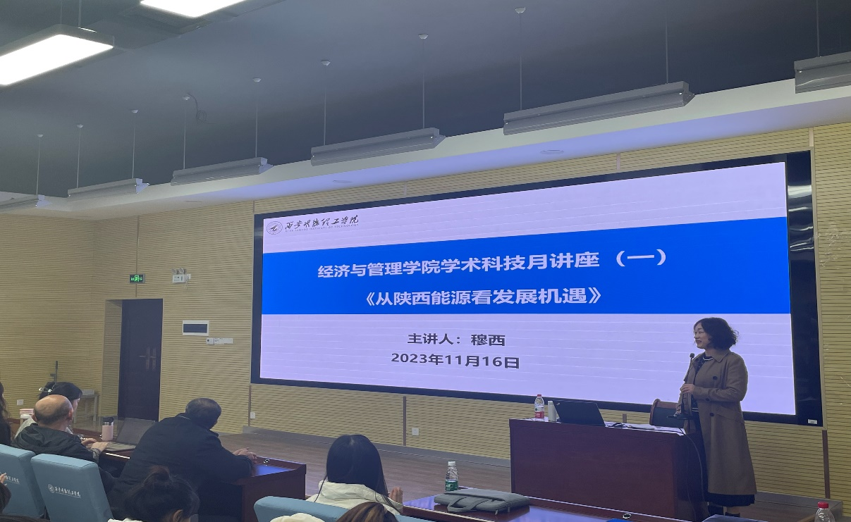 为开拓广大师生的知识视野,了解专业、行业发展现状和前景。经济与管理学院于11月16日下午在建德楼201举办学术科技月系列讲座第一讲,邀请学院能源经济研究中心主任穆西教授为师生做题为“从陕西能源看发展机遇”的专题讲座。学校科技处副处长周强,经济与管理学院副院长雷娟,能源经济专业负责人张荣斌、专业教师及经济与管理学院部分学生参加了学习。讲座由经济与管理学院副院长雷娟主持。