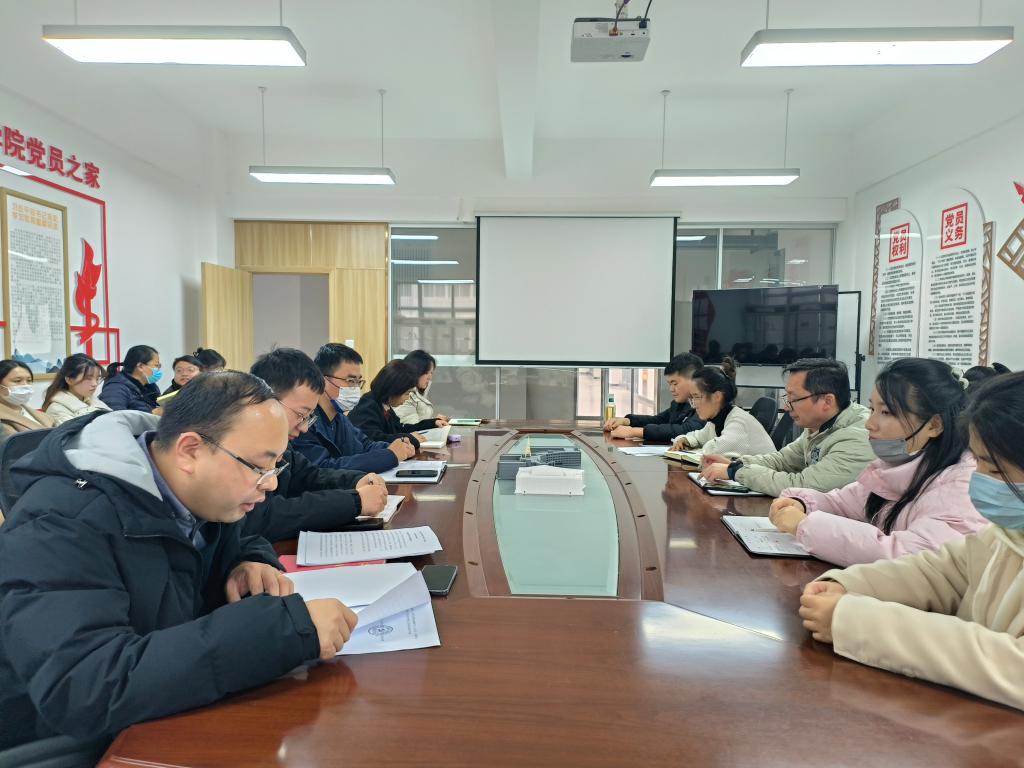 学院副院长李建勇为大家解读了学校评建工作时间表、路线图和学院评建工作重点任务清单,使支部党员进一步明晰了教学评建工作观测点的各项指标体系。