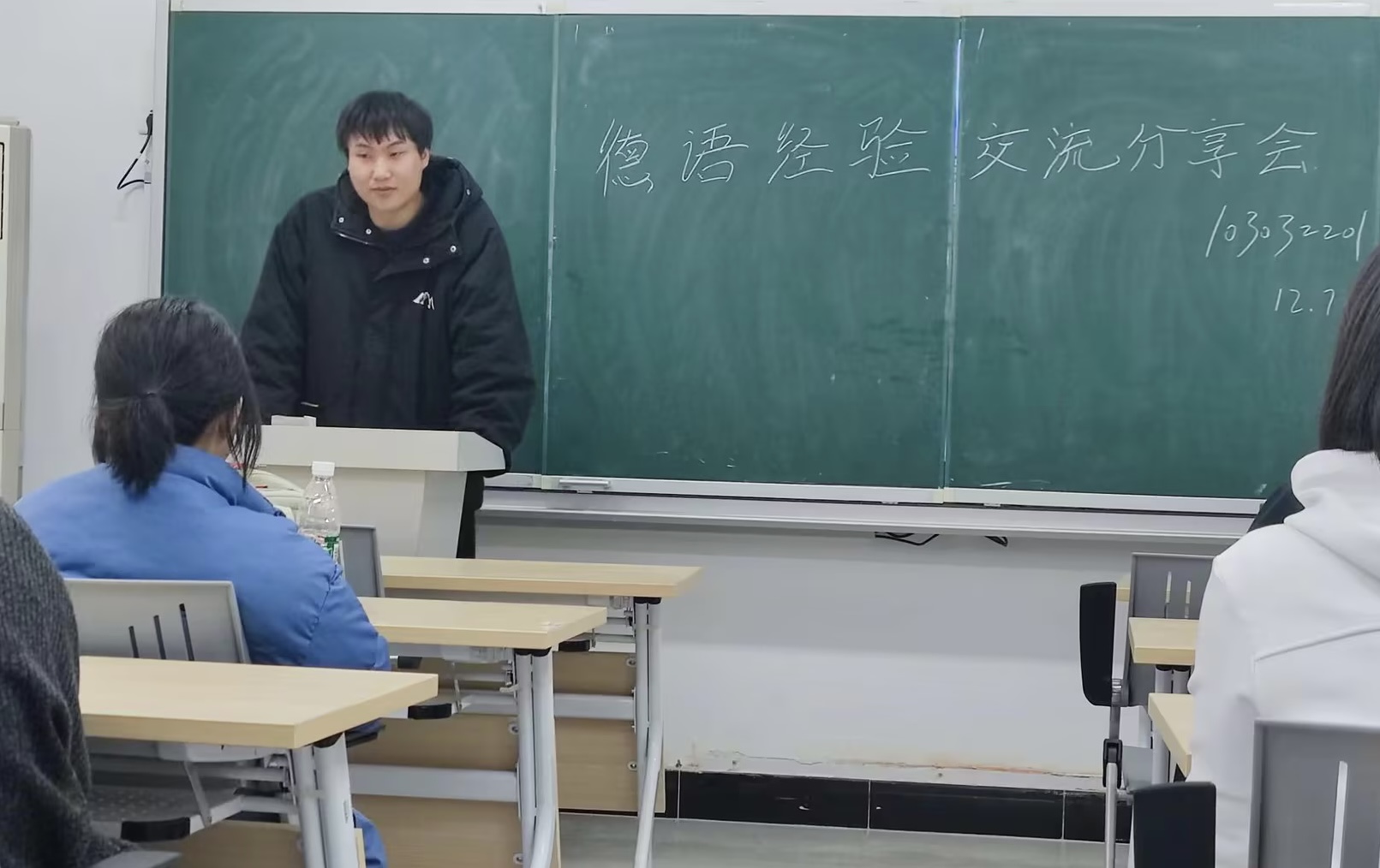 为促进德语专业学生的学习动力、树立优良学风,语言文化传播学院德语专业于12月7日举行了以“如何更好学习德语”为主题的学习经验交流分享会。此次交流,邀请到了2023届优秀毕业生焦景宝、在校优秀学生代表刘延昕、贺文和单长威等与同学们一起分享了德语学习的技巧与经验。