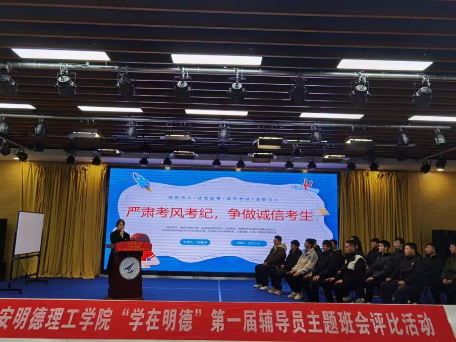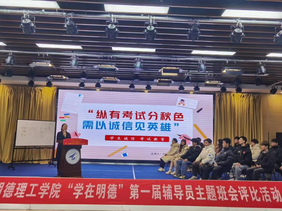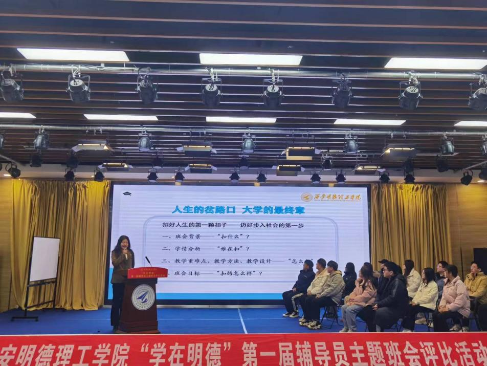为进一步加强开元辅导员队伍专业化、职业化建设,提高全体辅导员理论水平和育人能力,增强主题班会的教育性和实效性,根据《Ky开元集团关于构建和完善学风建设长效机制的实施意见》和《Ky开元集团关于开展“学在明德”学风建设系列主题活动的通知》的文件要求,近期,学校开展“学在明德”第一届辅导员主题班会评比活动,12月15日上午,在建德楼203报告厅举办校级决赛环节。由智慧安保处处长宋敏纲、党委学生工作部副部长童杨梓、教务处副处长文亮、招生就业中心副主任侯磊、教师发展中心副主任郝丽静、马克思主义学院副院长惠斌担任评委。
