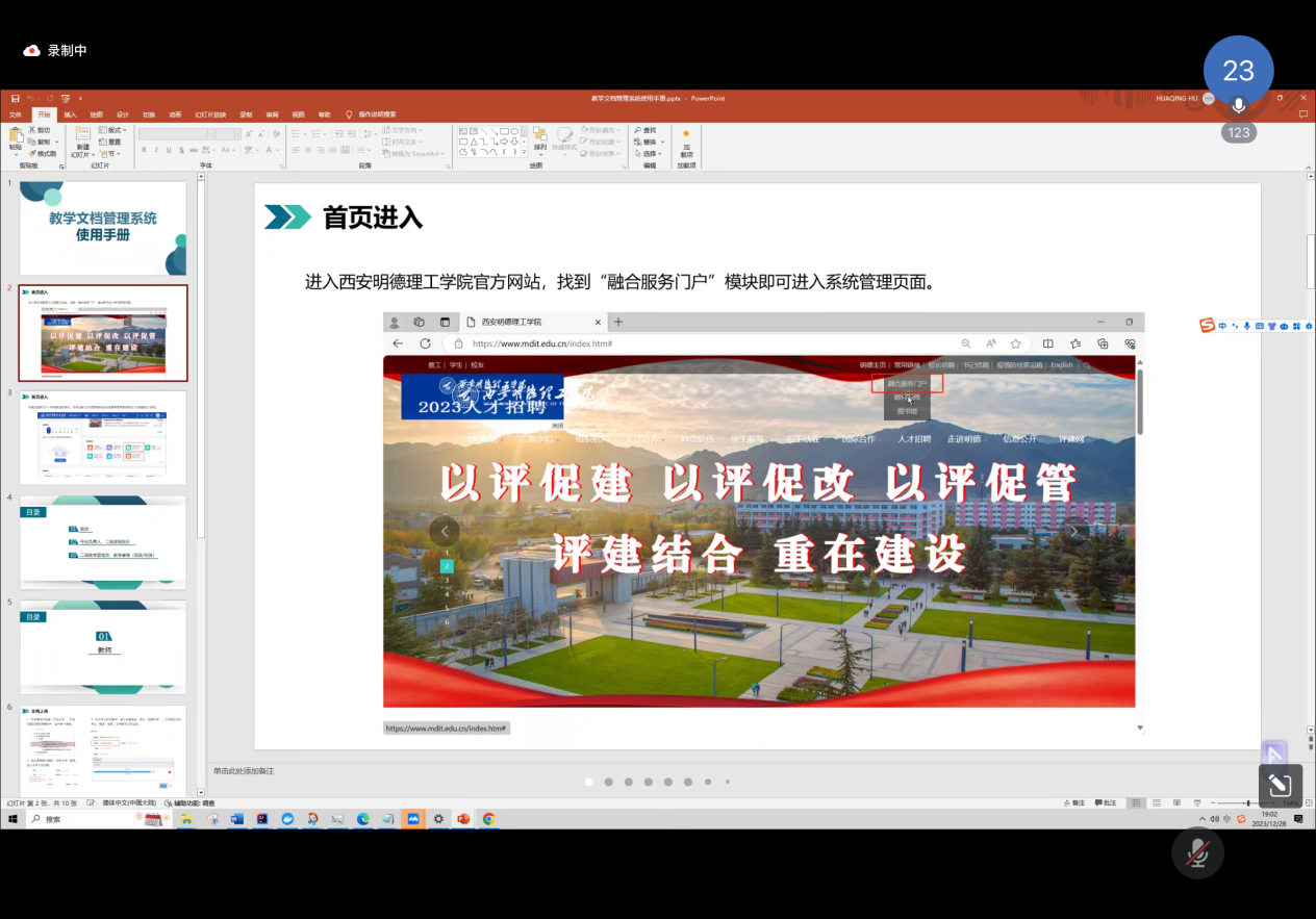 然后,东华理工大学胡老师详细介绍了教学文档管理信息系统的操作流程、文档上传注意事项以及审核环节的要求。