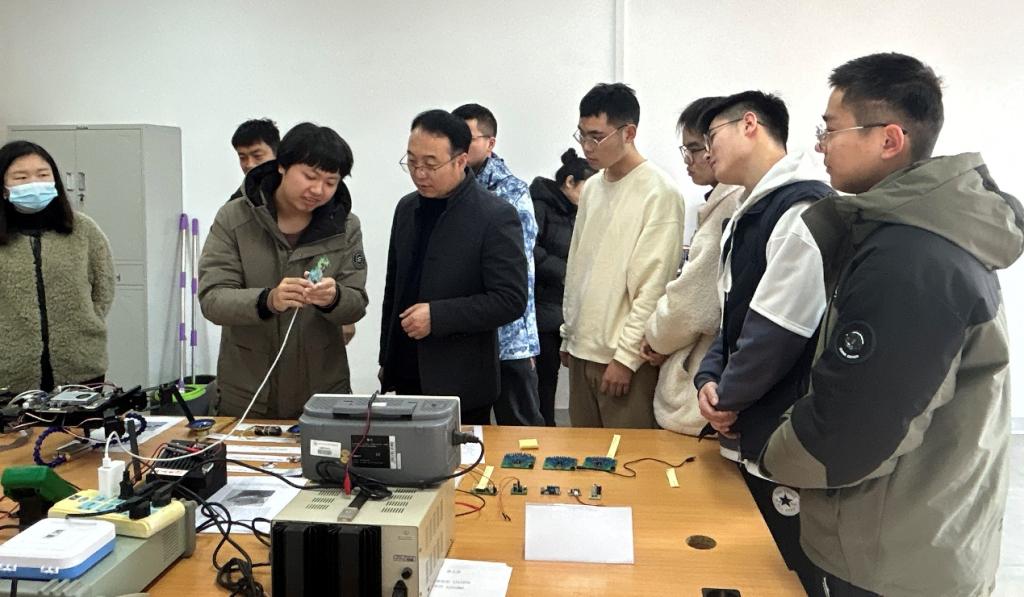 在三个月的学习和实践过程中,学生们亲手设计、制作了一系列电子产品,并于2024年1月4日在科创实验室举办了成果展,信息工程学院执行院长翟书颖、党委书记肖千春、北斗应用技术学院副院长张健、教务处李思璋及学院教师莅临指导,学生们详细介绍并展示了自己的作品。