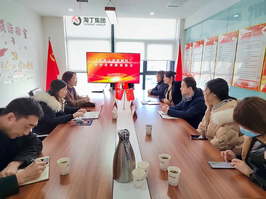 为深入落实教育部和陕西省教育厅访企拓岗促就业专项行动,进一步了解企业用人需求,深化校企交流合作,促进毕业生高质量充分就业。1月22日上午,在西安市长安区人力资源和社会保障局的对接下,经济与管理学院党委书记兼行政副院长何文举、毕业班辅导员马子墨、冯莹莹赴陕西淘丁实业集团有限公司参加政校企对接座谈会。
