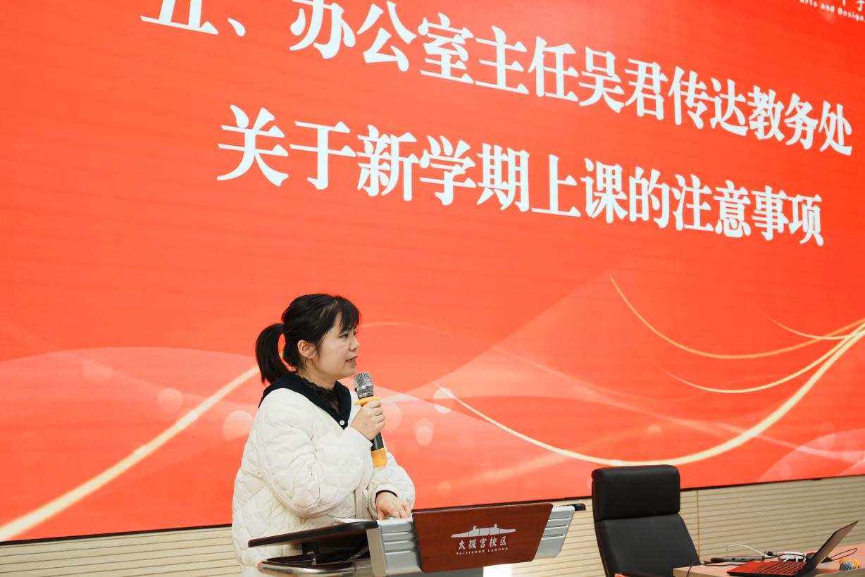 为了高质量落实好新学期各项工作,3月2日下午,艺术与设计学院在北校区尚德报告厅召开全院教职工大会,对2023-2024学年春季学期各项工作进行部署安排。艺术与设计学院院长苟秉宸、副院长冯强、大师工作室特聘教授柏雨果及全院教职工参加会议,会议由学院党委书记兼行政副院长雷宇主持。